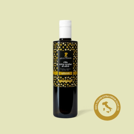 Ogliarola – 100% włoska oliwa z oliwek extra virgin, tłoczona na zimno z oliwek uprawianych w Apulii.